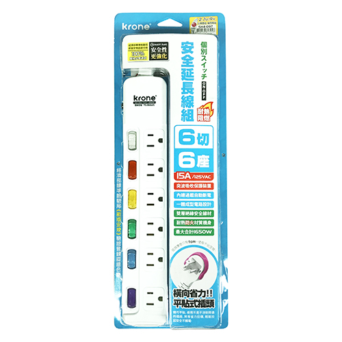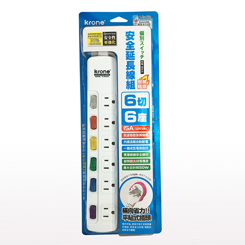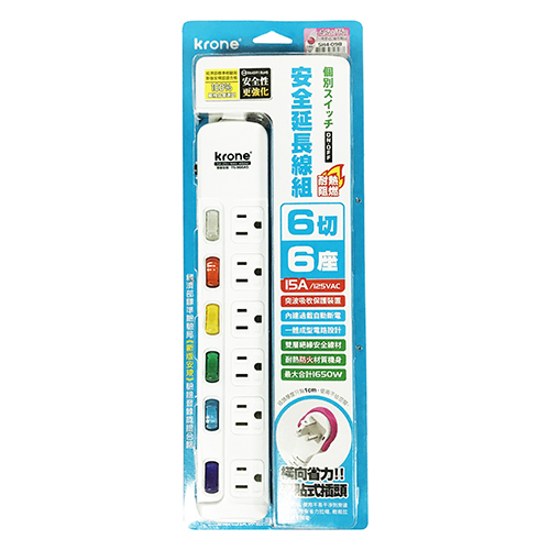 KRONE 立光 3孔6燈6座 耐熱阻燃 延長線 ...