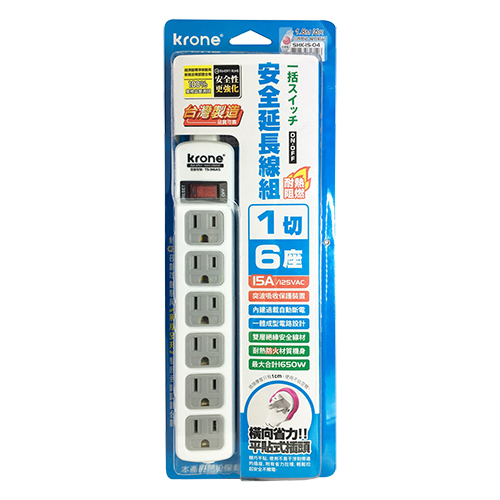 KRONE 立光 3孔6燈6座 耐熱阻燃 延長線 180cm SH4-096