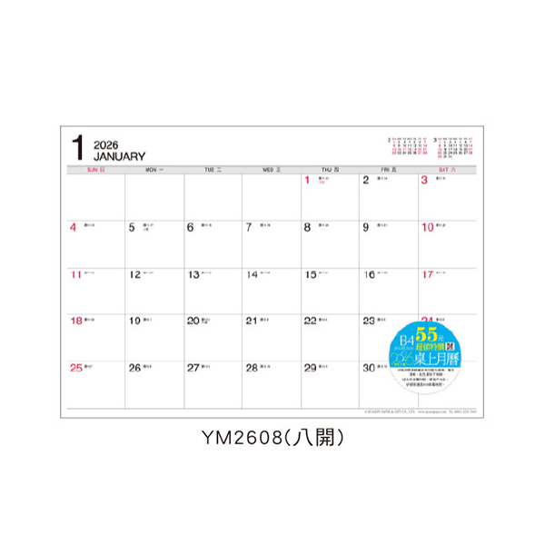 2026年超值八開/B4桌曆/桌上月曆內紙(不含墊) YM2608