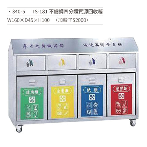 TS-181 不鏽鋼四分類資源回收箱 340-5 W160×D45×H100