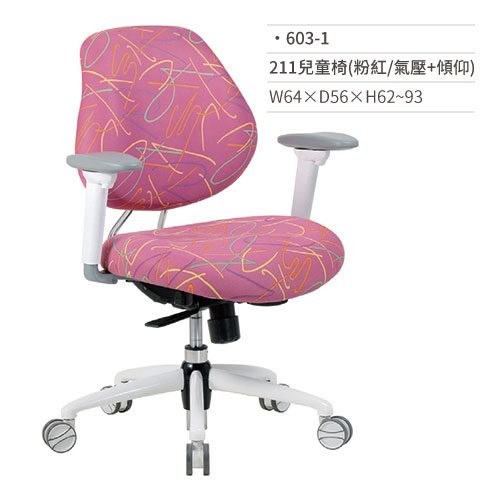 211兒童成長椅(粉紅/無手/氣壓+傾仰) 603-2 W50×D56×H62~...