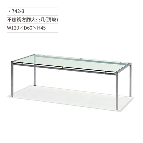 不鏽鋼方腳大茶几(清玻) 742-3 W120×D60×H45 (請來電詢價)