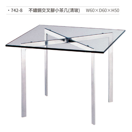 不鏽鋼交叉腳小茶几(清玻) 742-8 W60×D60×H50 (請來電詢價)