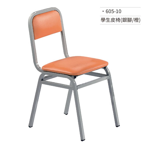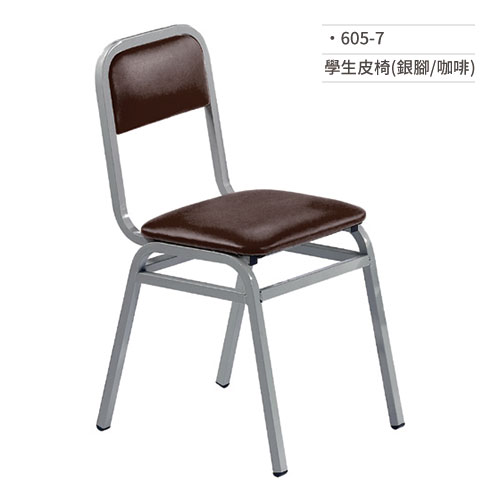 學生皮椅/課椅(銀腳/咖啡) 605-7