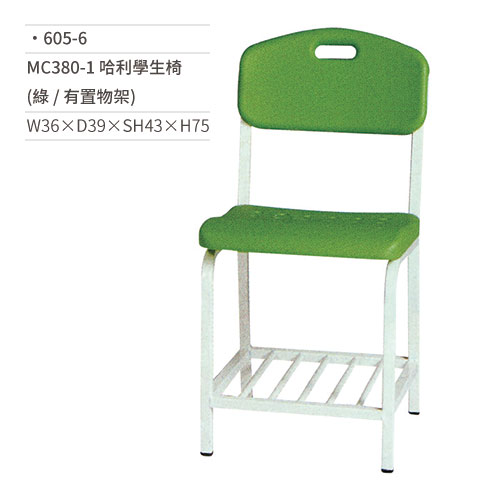 MC380-1 哈利學生椅/課椅(綠/置物架) 605-6 W36×D39×SH43×H75