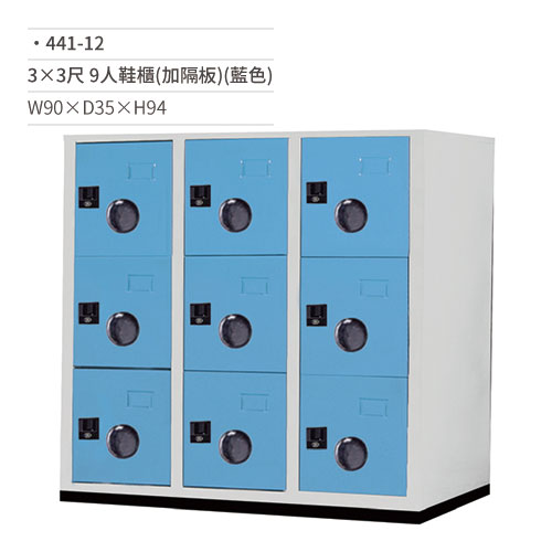 9人鞋櫃(3×3尺/加隔板/藍色)441-12 W90×D35×H94