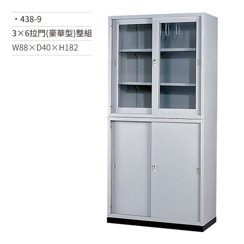 4×3玻璃拉門公文櫃(豪華型/中隔/三層)438-7
