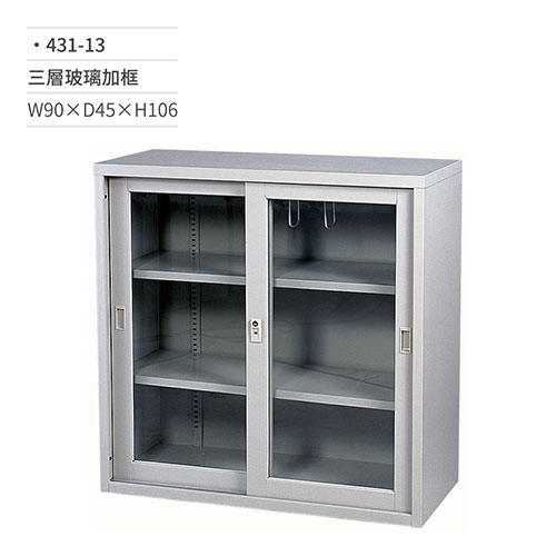 玻璃加框公文櫃(三層)431-13 W90×D45×H106