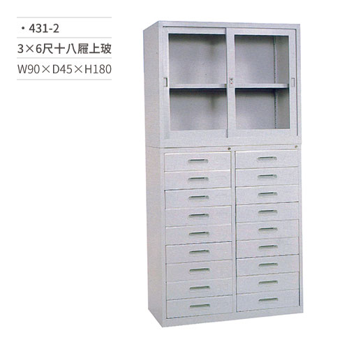 3×6尺公文櫃(十八屜上玻璃)431-2 W90×D45×H180