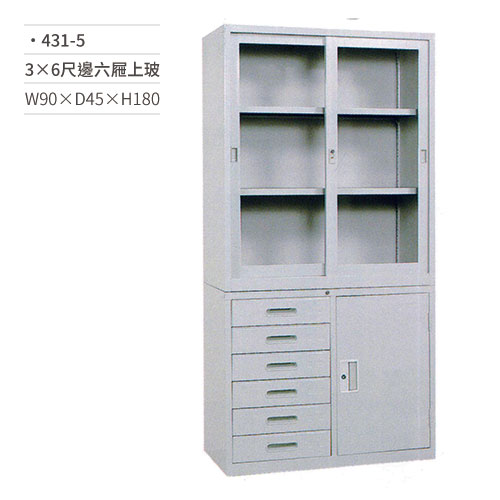 3×6尺公文櫃(左六屜上玻璃)431-5 W90×D45×H180