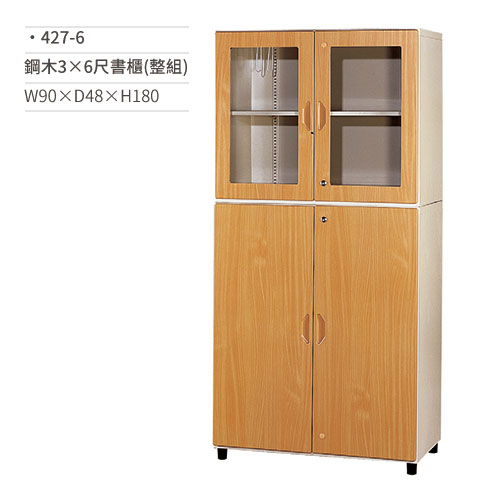 鋼木3×6尺書櫃(整組/開門三層三抽屜)427-9 W90×D48×H180