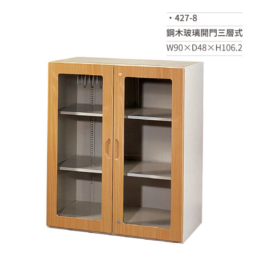 鋼木櫃玻璃(開門三層式)427-8 W90×D48×H106.2