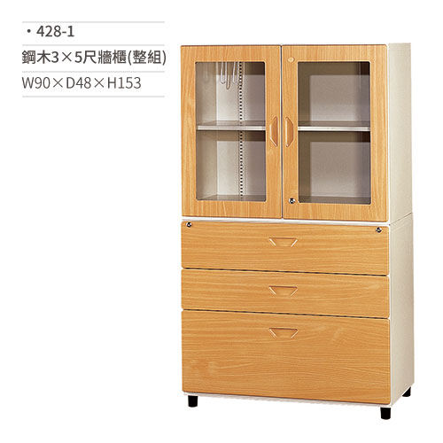 鋼木3×5尺牆櫃(整組/開門二層三抽屜)428-1 W90×D48×H153