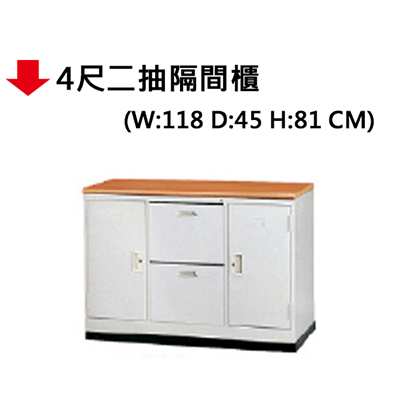 4尺二抽隔間櫃 # 附木紋面板 黑腳 (超低優惠 歡迎來電詢價)