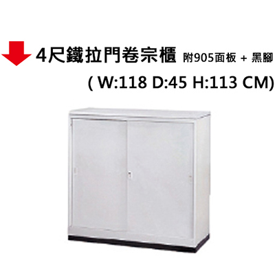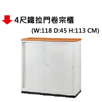 4尺鐵拉門卷宗櫃 # 附木紋面板 黑腳 (超低優惠 歡迎來電詢價)
