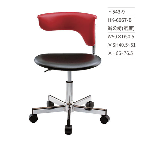 高級辦公椅(紅/有扶手/氣壓+傾仰)544-6 W57×D47×H84~92