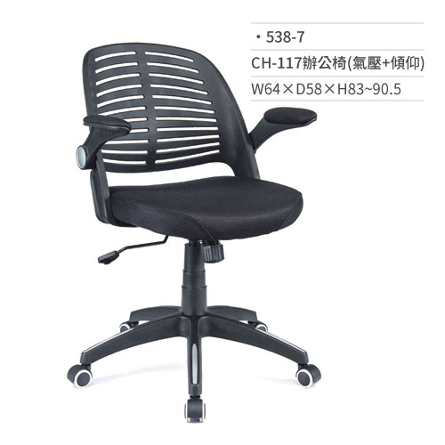 高級網椅/辦公椅(有扶手/氣壓+傾仰)538-7 W64×D58×H83~90.5