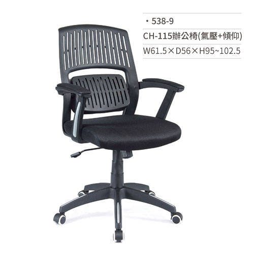 高級網椅/辦公椅(有扶手/氣壓+傾仰)538-9 W61.5×D56×H95~102.5