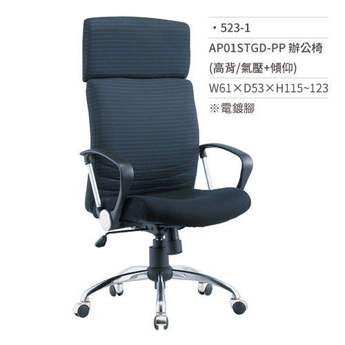 優質布料椅/辦公椅(高背/電鍍腳/有扶手/氣壓+傾仰)523-1 W61×D53×H115~123