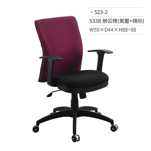 優質布料椅/辦公椅(有扶手/氣壓+傾仰)523-2 W59×D44×H88~98