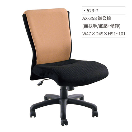 優質布料椅/辦公椅(無扶手/氣壓+傾仰)523-7 W47×D49×H91~101
