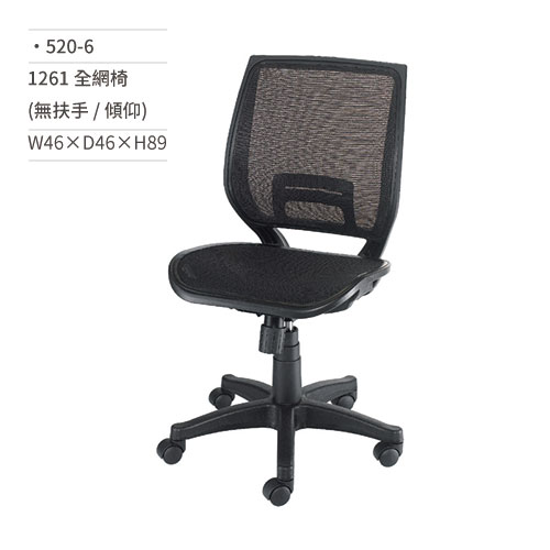 高級網椅/辦公椅(無扶手/傾仰)520-6 W46×D46×H89