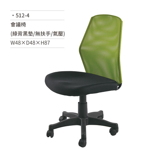 高級網椅/會議椅(綠背黑墊/無扶手/氣壓)512-4 W48×D48×H87