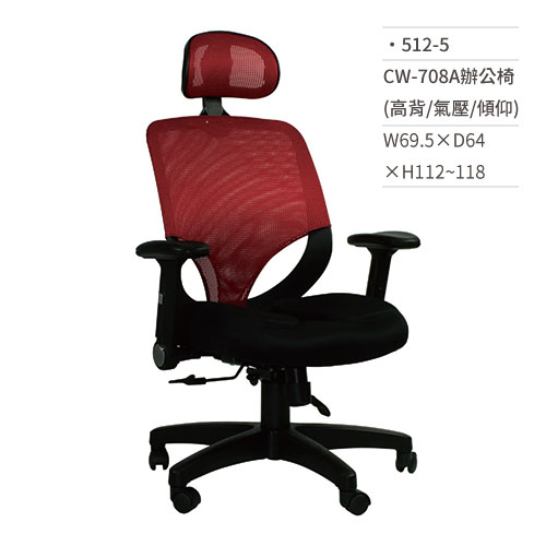 高級網椅/辦公椅(高背/有扶手/氣壓+傾仰)512-5 W69.5×D64×H112~118