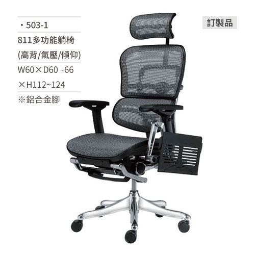 811多功能躺椅/主管辦公椅(高背/有扶手/氣壓式+傾仰)503-1 訂製品