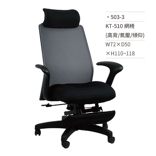 主管辦公椅/網椅(高背/有扶手/氣壓式+傾仰)503-3 W72xD50xH110~118