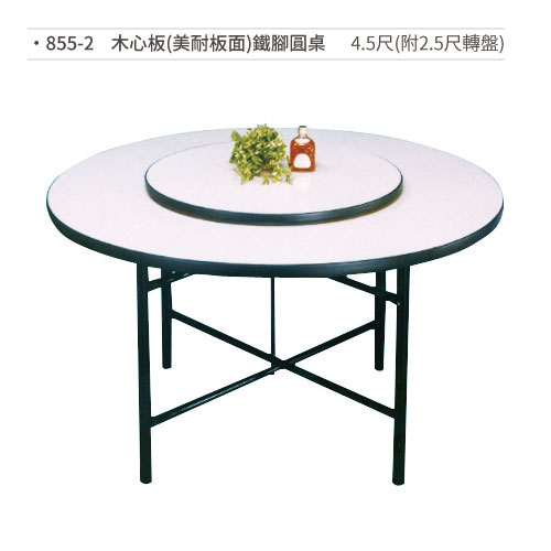 木心板(美耐板面)鐵腳圓桌(4.5尺/附2.5尺轉盤) 855-2