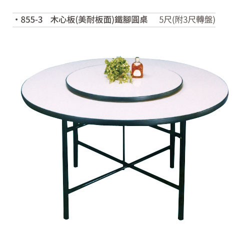 木心板(美耐板面)鐵腳圓桌(5尺/附3尺轉盤) 855-3