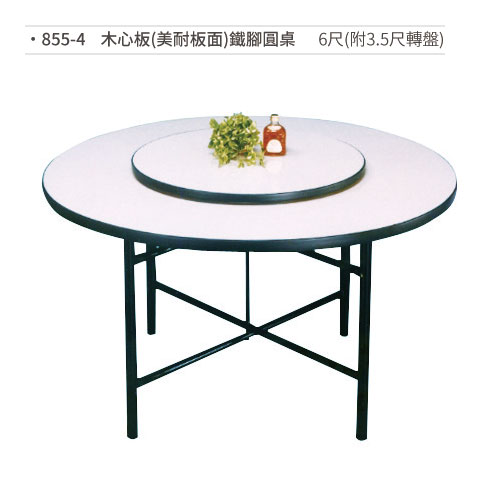 木心板(美耐板面)鐵腳圓桌(6尺/附3.5尺轉盤) 855-4