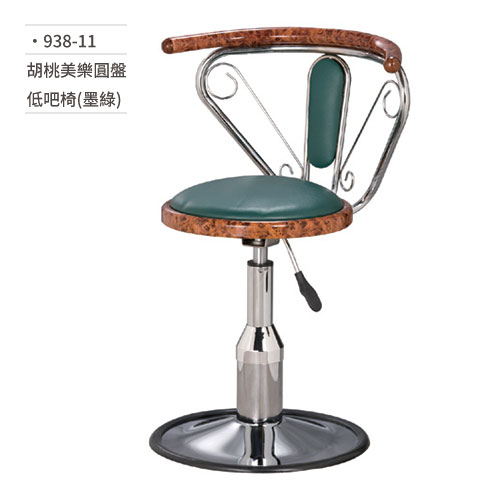 胡桃美樂圓盤低吧椅(墨綠) 938-11