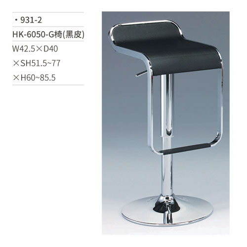 HK-6050-G吧臺椅(黑皮) 931-2 W42.5×D40×SH51.5~77×H60~85.5
