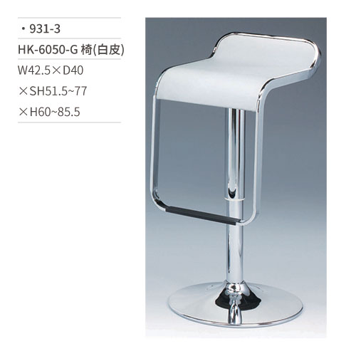 HK-6050-G吧臺椅(白皮) 931-3 W42.5×D40×SH51.5~77×H60~85.5