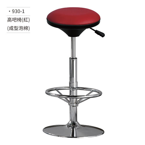 B166# 吧椅(紅色/不銹鋼底盤/不銹鋼腳踏) 930-10 W41×D42×H59~66