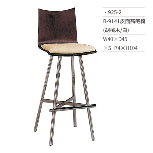 B-9141皮面高吧椅(胡桃木/白) 925-2 W40×D45×SH74×H104