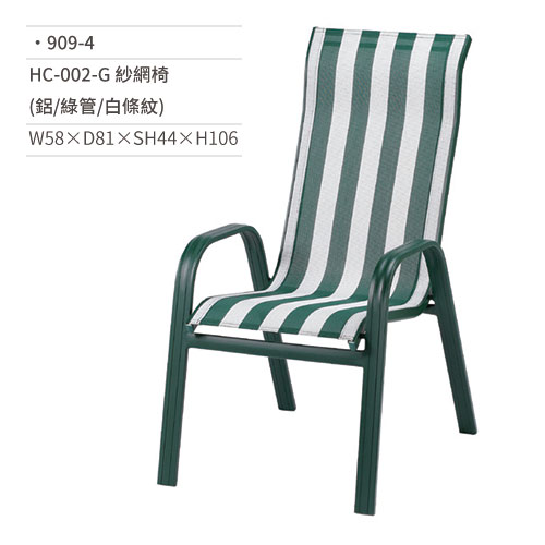 HC-002-G 紗網椅(鋁/綠管/白條紋) 909-4 W58×D81×SH4...