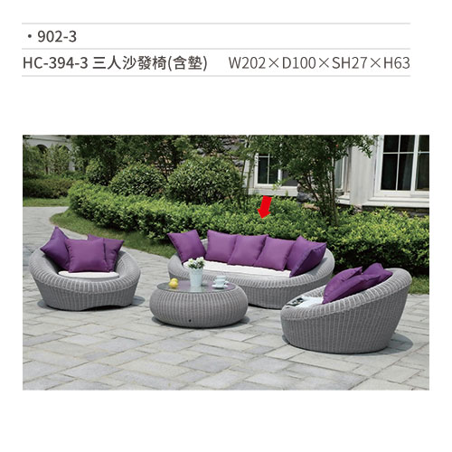 HC-394-3 三人沙發椅(單張/含墊) 902-3 W202×D100×SH27×H63