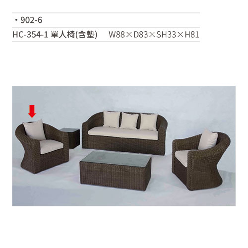 HC-354-1 單人椅(含墊) 902-6 W88×D83×SH33×H81