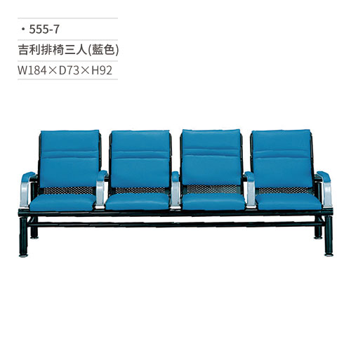 三人吉利排椅/公共排椅(藍色/有扶手)555-7 W184×D73×H92