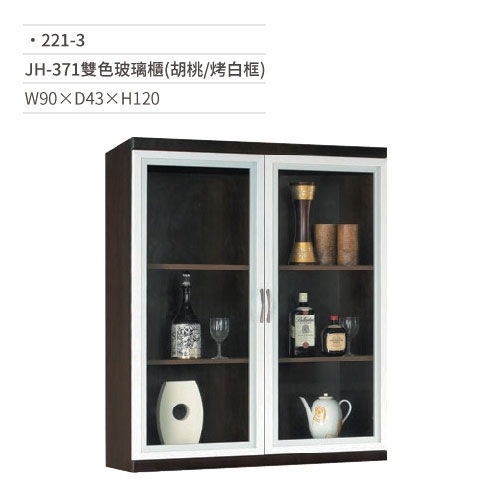 JH-371雙色玻璃櫃(胡桃/烤白框) 221-3 W90×D43×H120