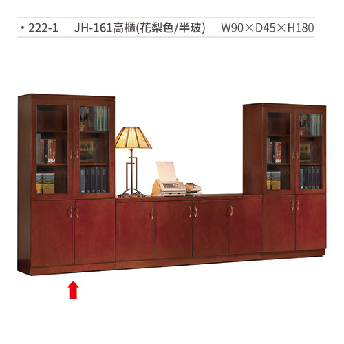 JH-161高書櫃(花梨色/半玻) 222-1 W90×D45×H180