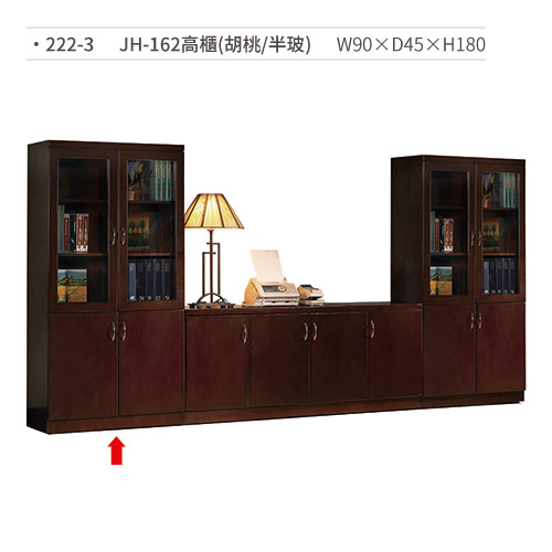 JH-162高書櫃(胡桃/半玻) 222-3 W90×D45×H180