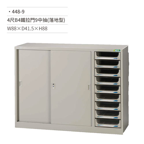 4尺B4效率櫃/文件櫃(鐵拉門/9中抽/落地型)448-9 W88×D41.5×...