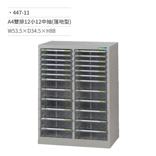 A4雙排效率櫃/文件櫃(12小12中抽/落地型)447-11 W53.5×D34.5×H88