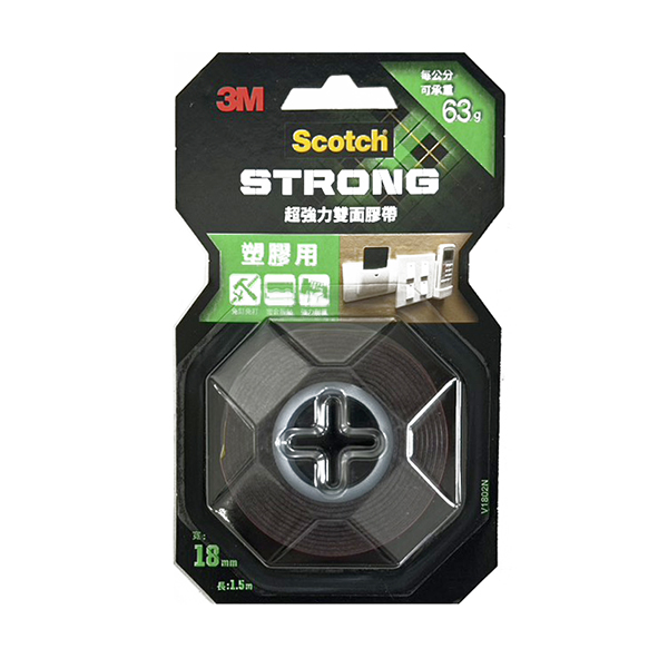 3M™ Scotch® 思高牌 V1802N 塑膠用/塑膠專用VHB™超強力雙面膠帶 壓克力膠帶 強力泡棉膠18mm×1.5m