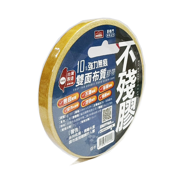 喜臨門 不殘膠強力無痕雙面布質膠帶 10mm x 6.5M NO.41107