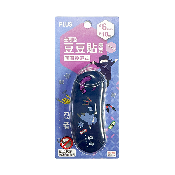 【限量商品售完為止】PLUS 普樂士 魔豆54-579-忍者 豆豆彩貼/豆豆貼/立可貼 雙面膠 6mm*10m TG-1110